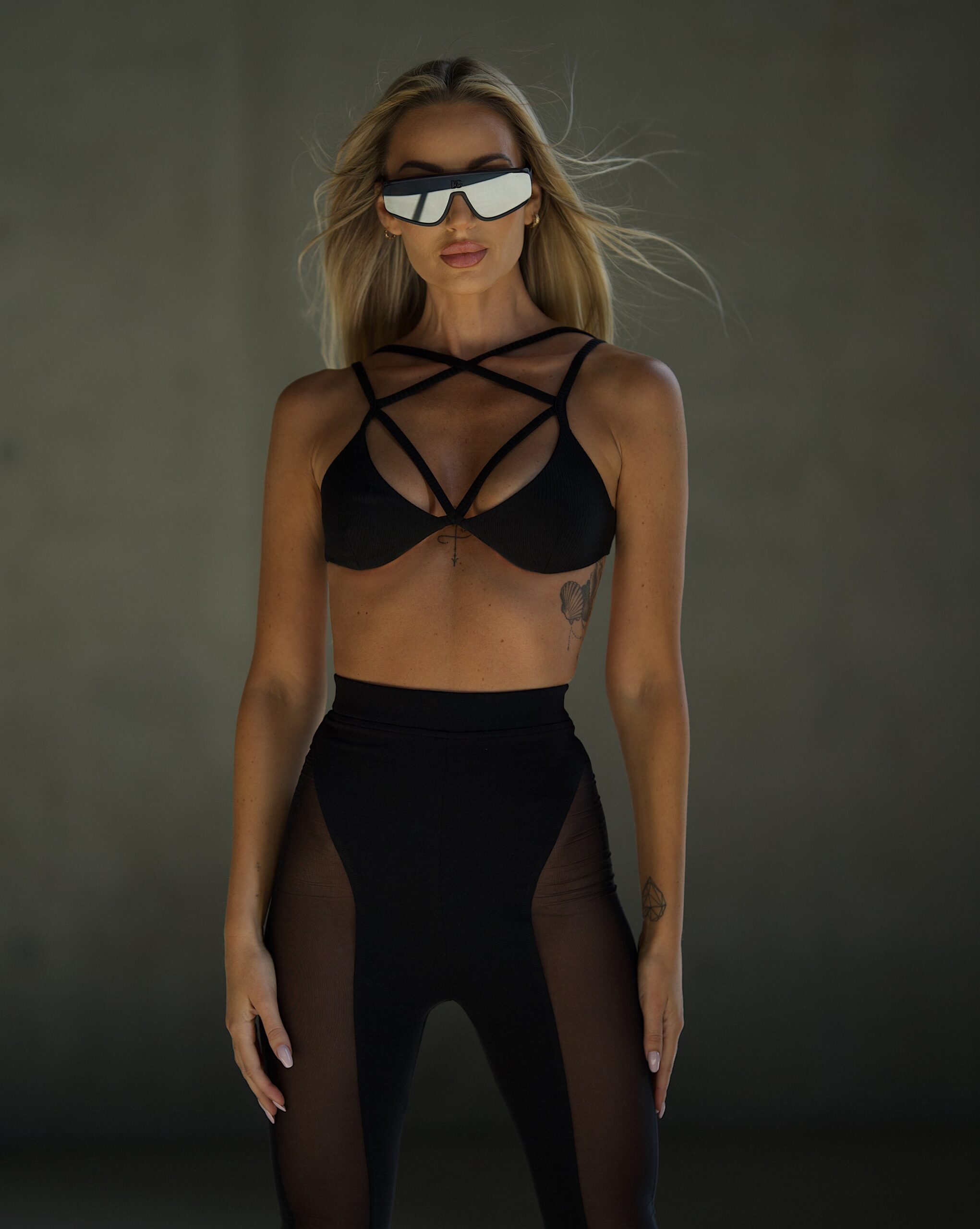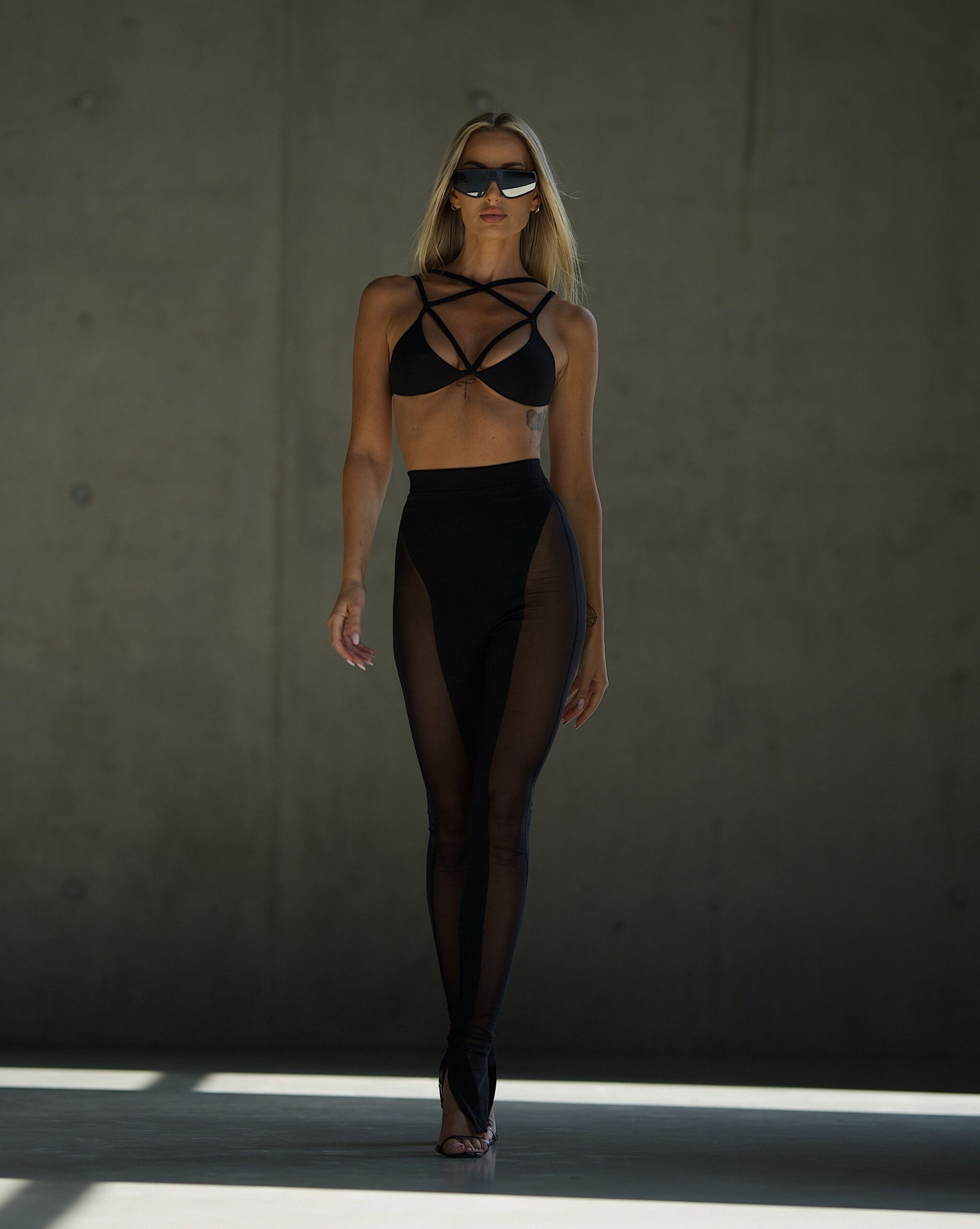 CHAMPAGNE SIPPING PANTS – spodnie z lycry + cielistej siatki